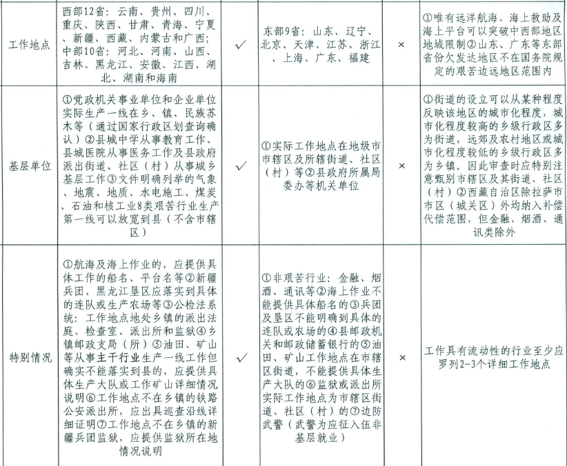 第二类是工作现场地处中西部地区和艰苦边远地区县以下的中央单位艰苦行业生产第一线,主要指气象、地震、地质、水电施工、煤炭、石油、航海、核工业等艰苦行业生产第一线。因上述行业分布广、地区跨度大和流动作业性强,工作现场可以包含中西部地区和艰苦边远地区县政府所在地。