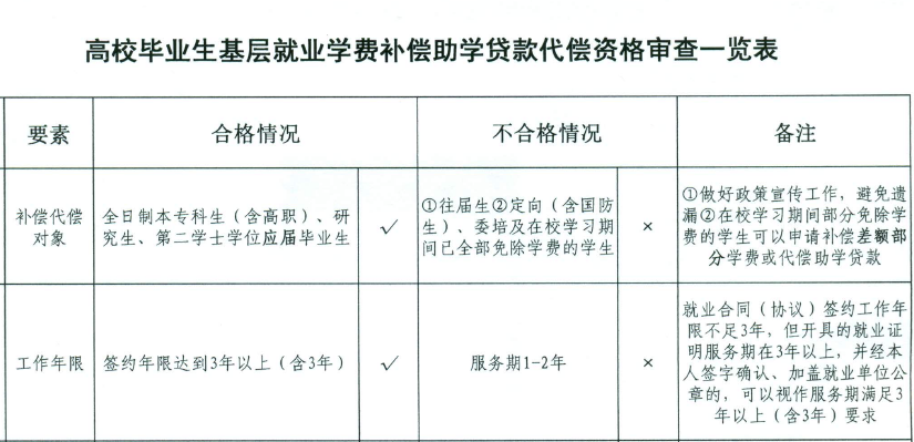 3、学生提供的材料必须经院(系)审核后汇总上报,院(系)请根据《附件1 基层就业补偿代偿必读参考文件》来审核学生的材料,不符合代偿要求的不予报送。