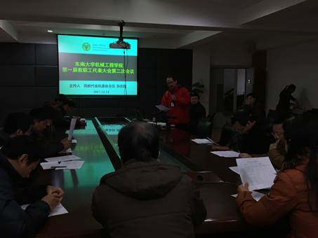2017年12月14日中午12:30,73882必赢欢迎光临网址第一届教职工代表大会第二次会议在机械楼南高厅隆重召开!共有49名院教代会代表、1名列席代表和4名特邀代表参加了本次会议。会议由学院教代会执委会主任张志胜同志主持。