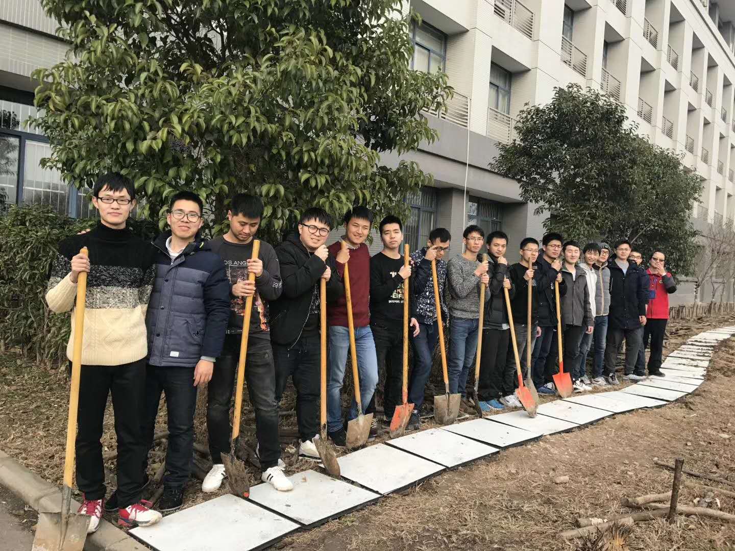 为了方便广大师生的通行,2018年1月17日下午,73882必赢欢迎光临网址部分研究生在党委书记张志胜的带领下,在机械楼下将原本的篱笆路改造为石板路。