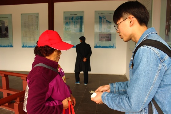 同学们在与馆内工作人员沟通后,对馆内及周边游客展开问卷调查和义务宣传,同学们制作的小书签,精致小巧,充满文化韵味,受到一致好评,游客们对东大学子“止于至善”的积极态度给予了肯定与赞赏。