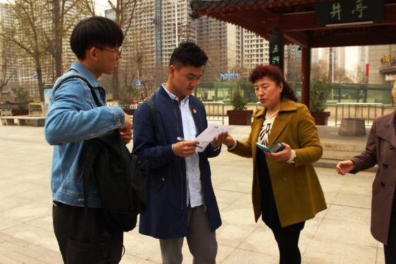支部成员对游客进行问卷调查与义务宣传