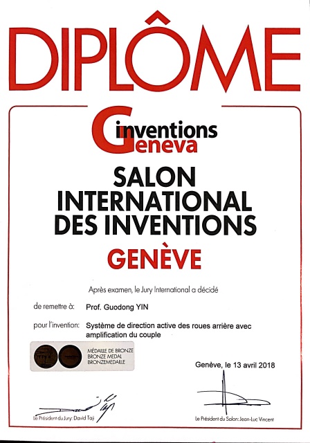 特别值得一提的是,由必赢官网殷国栋教授主导研发的后轮主动转向系统(Active Rear Wheel Steering System with Torque Amplification)首次亮相日内瓦国际发明展即斩获铜奖,让广大机械人在惊喜之余也感到未来大有可期。