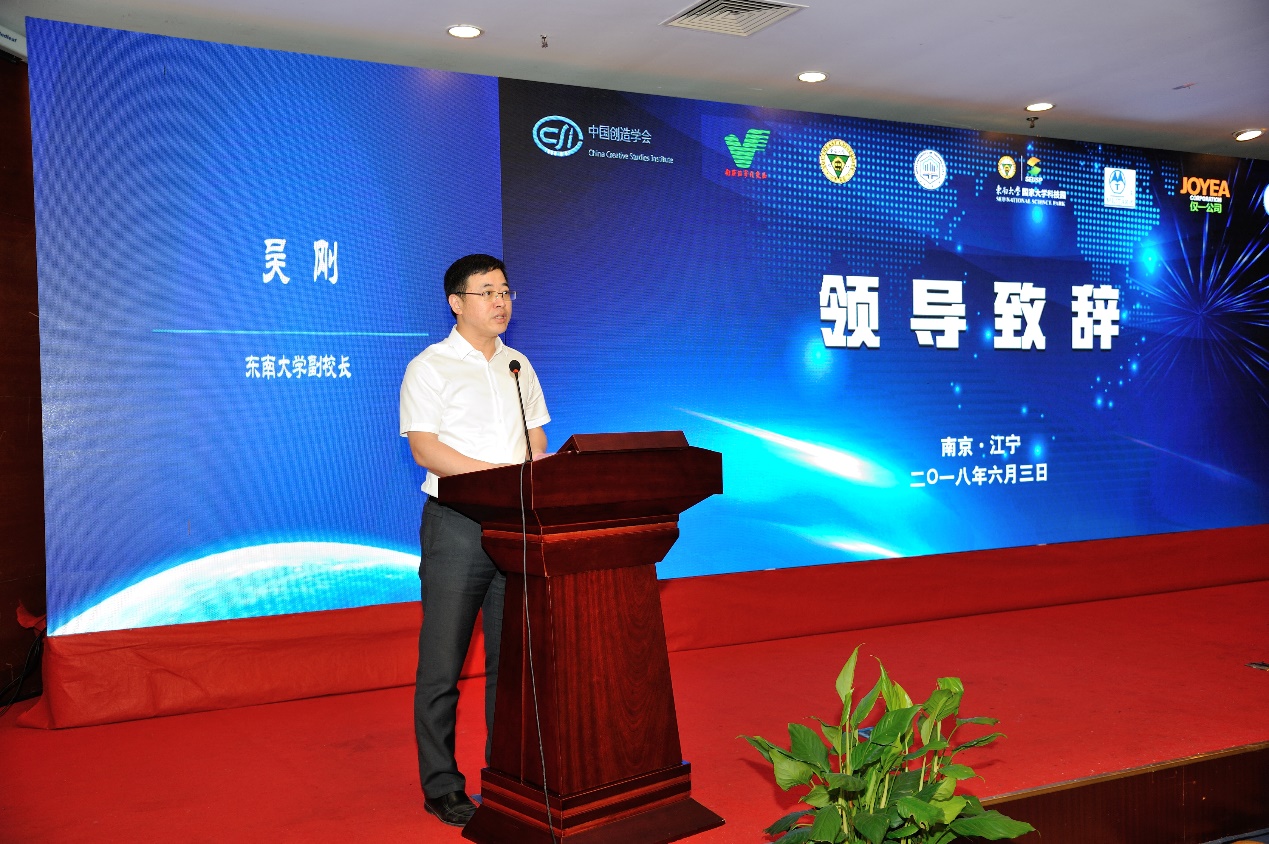 73882必赢欢迎光临网址副校长吴刚教授在致辞中提及 2002 年开展的73882必赢欢迎光临网址等六校创新作品竞赛,经过八年发展,该赛事已在全国范围内拓展。他代表73882必赢欢迎光临网址感谢中国创造学会的信任,并表示东大将持续关注获奖项目,通过科创实验室、大学科技园扶持获奖项目成果转化落地,持续推进双创人才培养,实现“双一流”建设与区域发展的紧密结合。