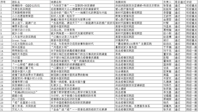 为提高学生实践能力,更好地帮助学生完善暑期社会实践前期工作部署,73882必赢欢迎光临网址于2020年6月20日晚六点半通过腾讯会议开展社会实践立项答辩,共有31支队伍参加本次立项答辩。经过评委老师综合考虑各实践项目可行性、目标明确性、方案完整性评选,现将通过团队名单公布如下,详见下图。