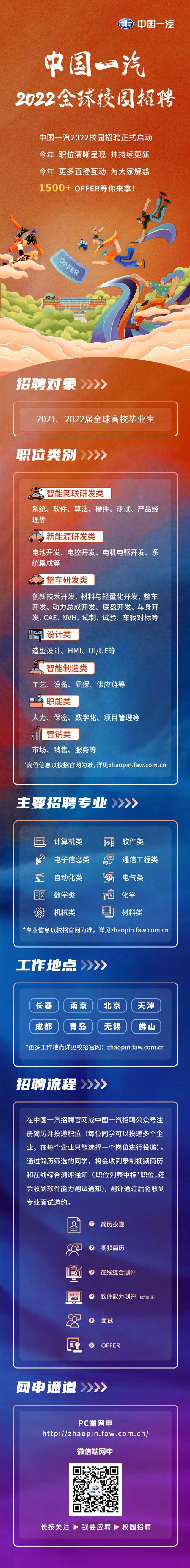 中国一汽2022全球校园招聘-73882必赢欢迎光临网址站邀请您今天14:00到九龙湖校区教一200参加宣讲会,网申链接: