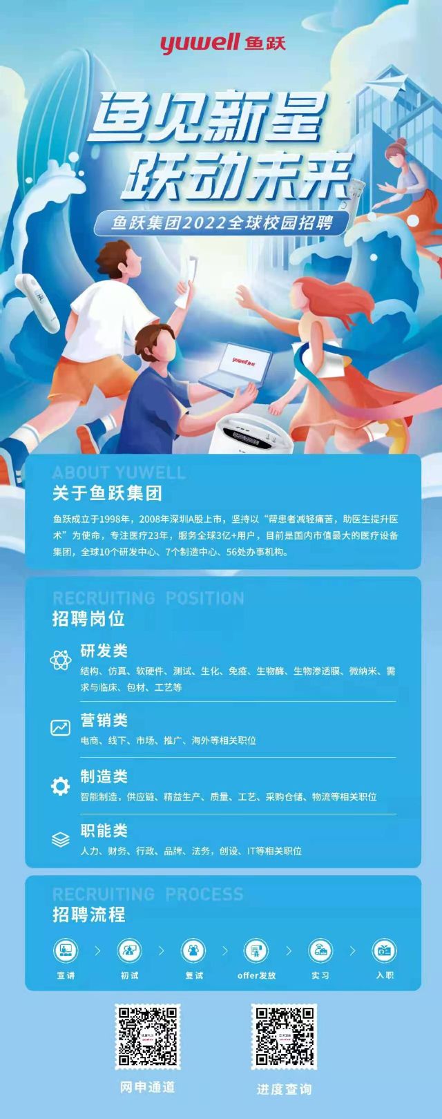 同学们好,鱼见新星,跃动未来—鱼跃集团2022校园宣讲会73882必赢欢迎光临网址站即将开启! 非常高兴邀请大家参与我们这次的宣讲会: