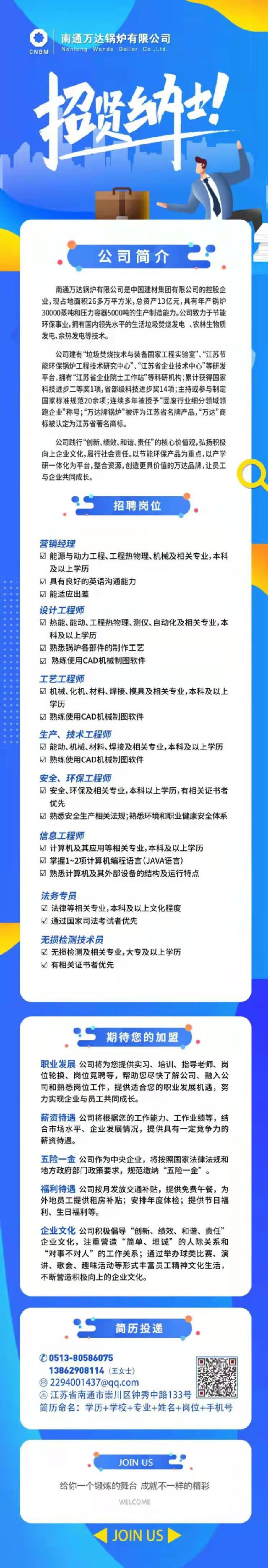 九龙湖教1-105,七点到九点,南通万达锅炉校园宣讲会。