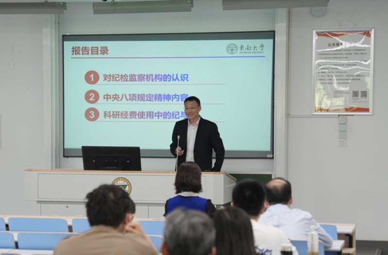 会议伊始,校纪委副书记、监察处处长赵会泽应邀作题为《认真学习领会中央八项规定精神,准确把握科研经费使用中的纪与法》的专题警示教育报告。他简要介绍了纪检监察机构的工作职责,阐述了纪检监察机构与教职员工的关系,结合案例全面解读了中央八项规定精神的主要内容,最后聚焦于科研经费管理中的纪律红线与法律底线,希望全体教师须增强廉洁自律意识,规范科研经费使用,进一步强化“底线思维”。