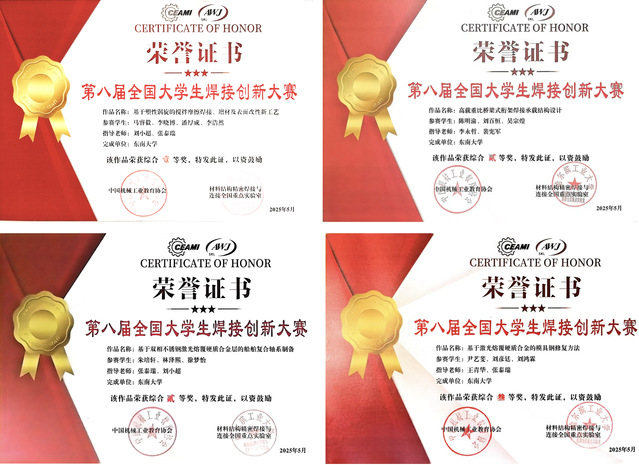 2025年5月16日至18日,第八届全国大学生焊接创新大赛在西北工业大学举行。本届大赛73882必赢欢迎光临网址共派出4支队伍参赛,最终获得一等奖1项、二等奖2项、三等奖1项,取得历年参赛最佳成绩。