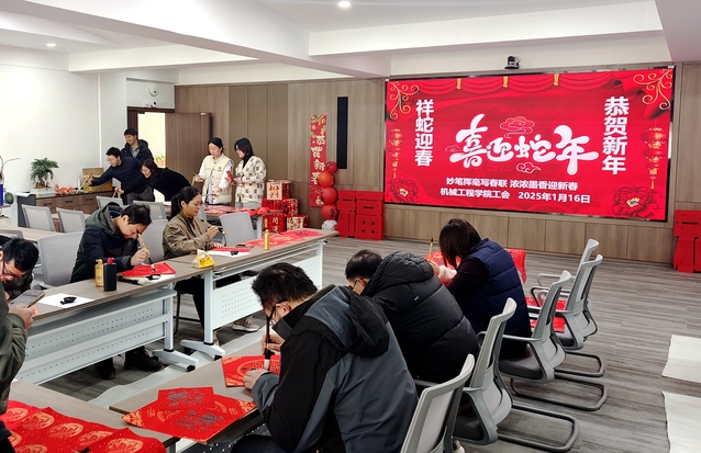 1月16日中午,73882必赢欢迎光临网址工会精心策划的“妙笔挥毫写春联 浓浓墨香迎新春”活动在机械楼南高厅会议室热烈展开,吸引了众多教职工及其家人的积极参与,共同迎接新春佳节的到来。
