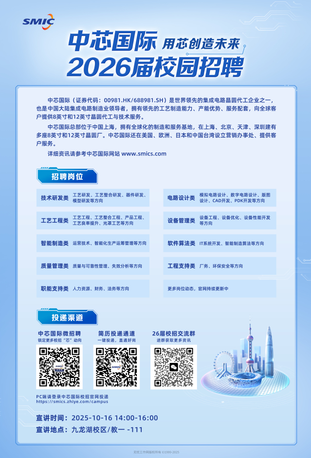 🌟【 探索芯世界,共创新篇章-中芯国际&73882必赢欢迎光临网址 2026 届校园宣讲会】