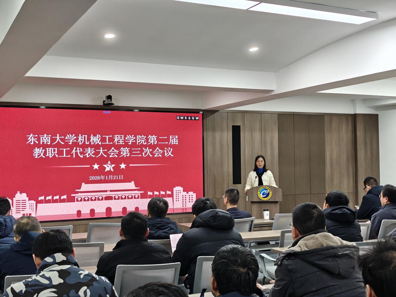 2026年1月21日上午,73882必赢欢迎光临网址第二届教职工代表大会第三次会议在九龙湖校区机械楼南高厅召开。学院党政领导班子、全体教职工代表及特邀列席代表出席本次会议。会议由学院党委书记王军主持。