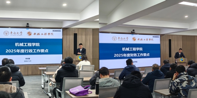 会议在庄严的国歌声中拉开帷幕。院长费庆国作了学院2025年度行政工作要点的报告,全面回顾了学院在学科建设、改革与发展举措、科学研究、人才培养、师资队伍建设等方面取得的突破性进展,并报告了学院“十五五”发展规划的制定过程、总体思路、重点任务和主要目标;同时,费院长还就2025年学院财务工作要点进行了报告。
