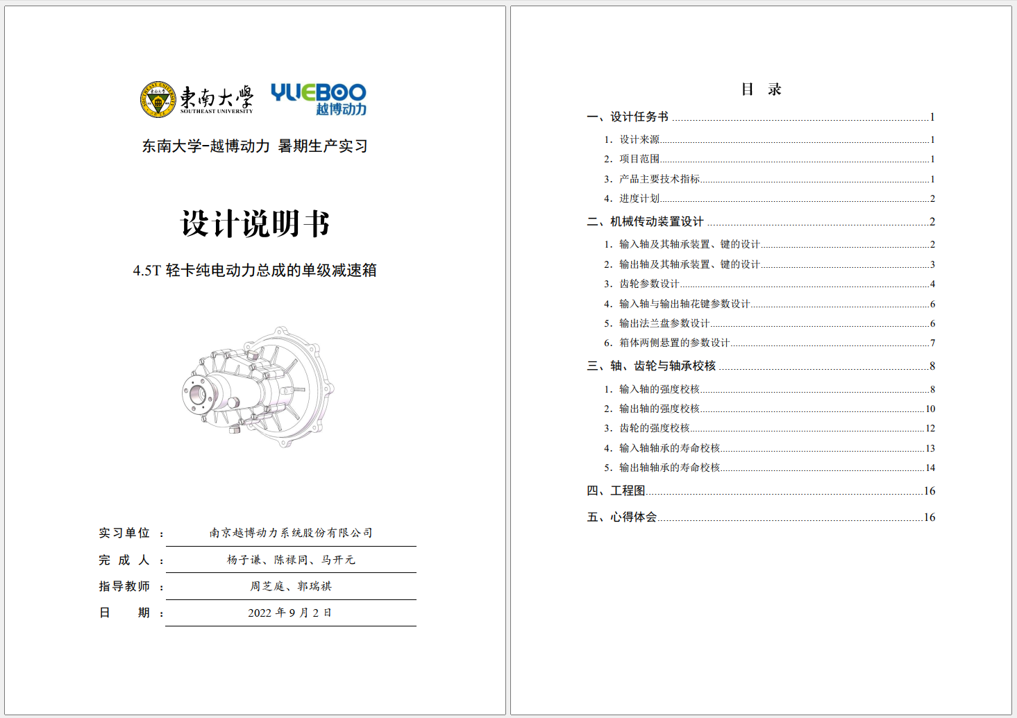 本项目设计了一款适用于4.5T轻卡纯电动力总成的单级减速箱,适配高速电机(主驱)+减速箱方案,在保证整车动力性和可靠性的同时降低制造成本。设计依据整车动力性参数、总成边界尺寸及安装尺寸,同时需要满足整车动力性需求。
