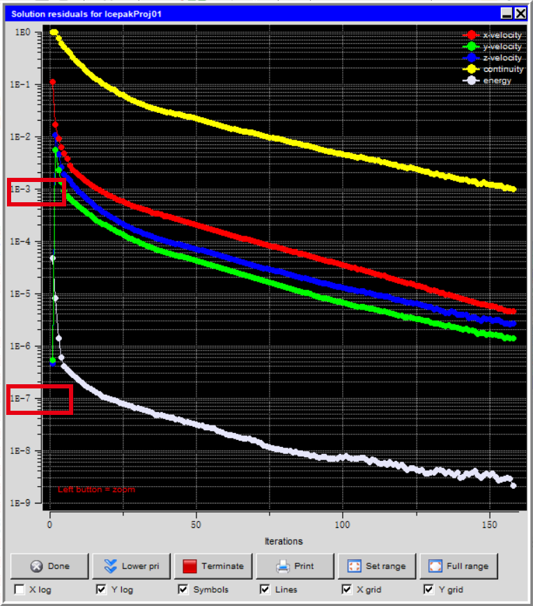 变量监控点。如果残差曲线显示求解已经收敛,但是监控点的变量仍有变化,进出口质量和热量不守恒,那么此情况表示求解计算尚未完全收敛,修改Basic settingsFlowEnergy的残差标准数值,继续计算,使其收敛。