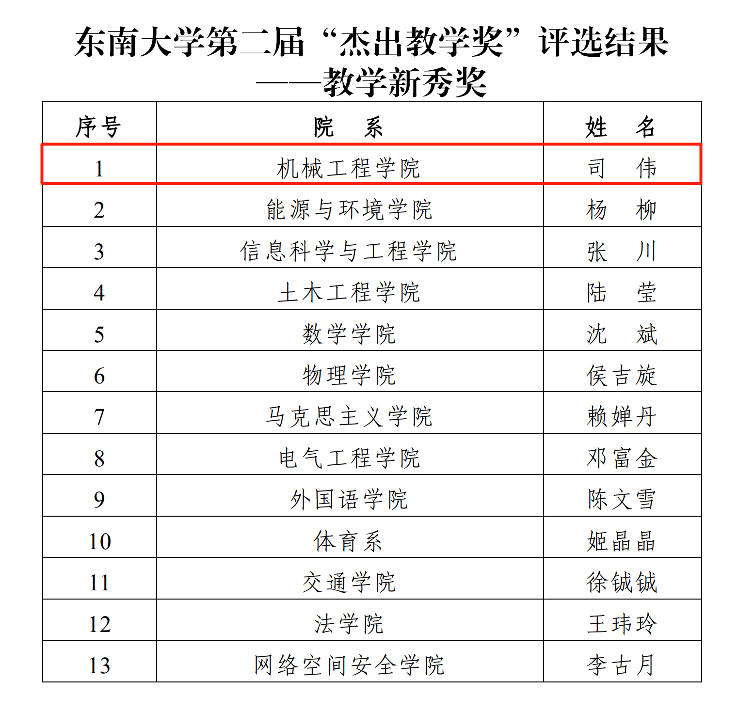近日,73882必赢欢迎光临网址公布了第二届“杰出教学奖”评选结果,必赢官网司伟副教授荣获“教学新秀奖”。