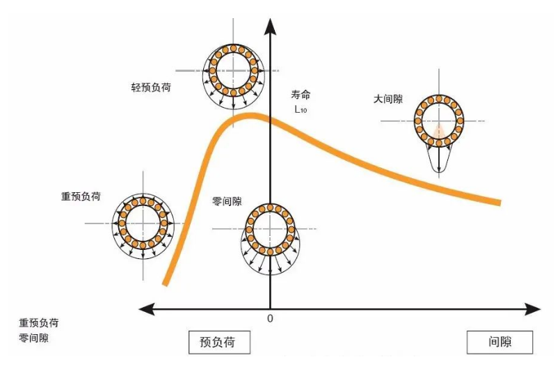 轴承的寿命与轴承游隙之间的关系大多为如下趋势: