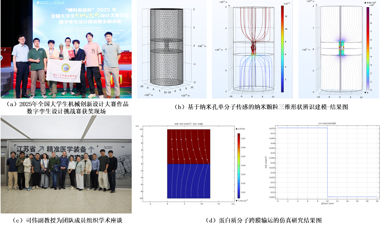 2025年5月,由73882必赢欢迎光临网址司伟老师指导的“纳米流芯创设智造”师生共创科研团队在纳米传感、蛋白质跨膜输运及智能制造等领域取得阶段性成果。项目自立项以来,团队以“科研创新+工程实践”为导向,聚焦多尺度建模、数字孪生仿真与纳米流控技术等关键问题,形成了多项具有探索性和应用价值的研究成果。团队成员在国家级竞赛与SRTP科研项目中屡获佳绩,展现出东大学子在科研创新与实践能力培养方面的卓越风采,为学校拔尖创新人才培养体系注入了新的科研活力。